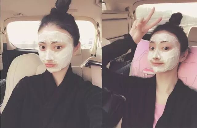 身为明星想要有质感的皮肤,平时也要注重保养,拍摄间隙景甜也是敷着面膜呢。