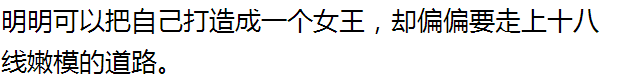 冉莹颖照片中的身材的确很诱人,但是看到脸的话就油然而生一种廉价感。