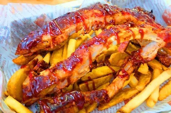 酱汁好浓,但是很奇怪却一点儿都不腻,有点儿像番茄酱有点儿像烤肉酱,但又好像都不是,只是结合了两种酱汁的优点却一点儿都不觉得突兀。