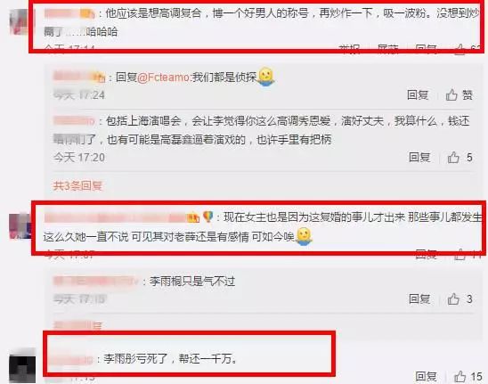 从网友留言也可以看出大家的态度也慢慢地转向了爆料者李雨桐:“他应该是想高调复合,博一个好男人的称号,再炒作一下,吸一波粉。没想到炒糊了……哈哈哈”、“我感觉他这么做就有点耍人家了。复合行,那是不是先把钱还人家啊。”