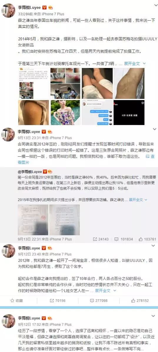 薛之谦这几日可谓是一直处于风口浪尖,即使是王宝强离婚案有了新进展,也未能盖过他的风头。9月8日薛之谦高调宣布与前妻高磊鑫复合,着实让网友吃了一惊。正当网友才为两人的再次结合感动不已之时,知名淘宝店铺主理人兼模特的李雨桐在微博曝出薛之谦与其感情及金钱方面的纠葛,再次考验了网友们的脑洞。