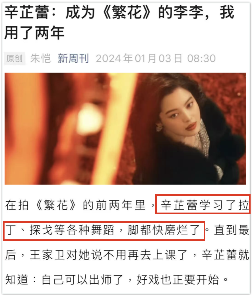 ▲为演好李李,投入2年,学了一大堆舞蹈塑造女人味(来源@新周刊)