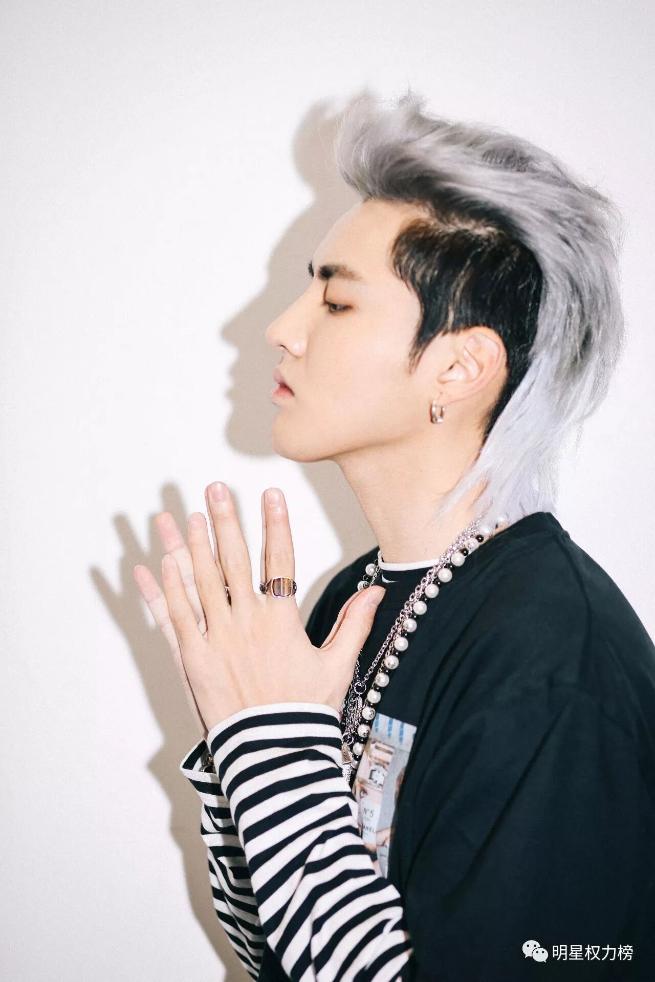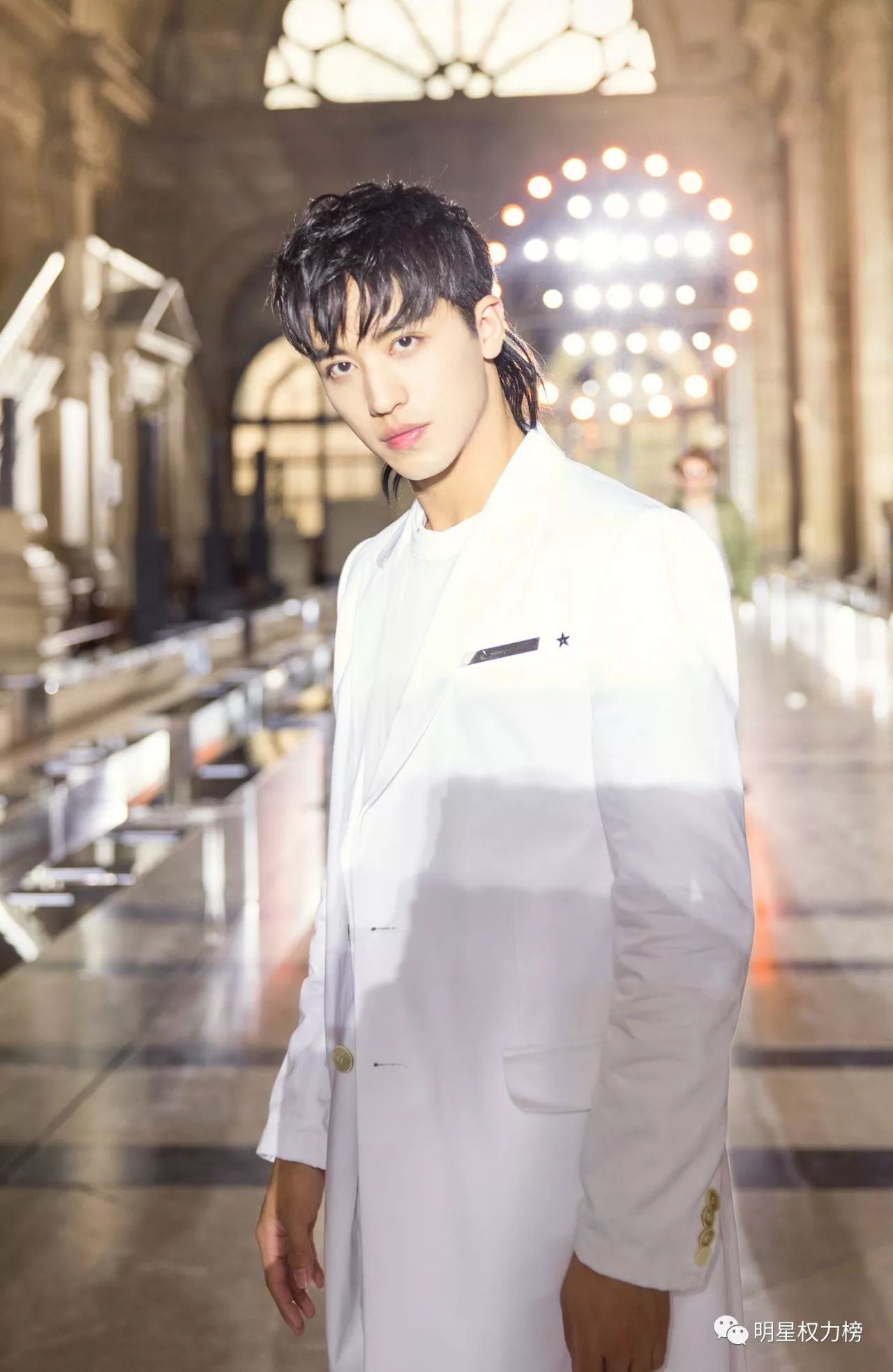 许魏洲也留过这个鲻鱼发型,配上一袭白色正装有点贵族小王子的feel,英俊明朗。