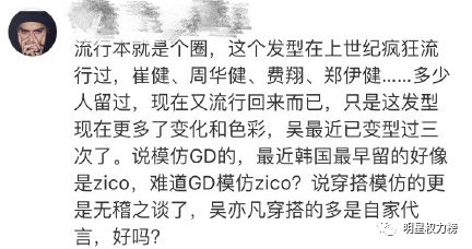 吴亦凡粉丝解释这个发型有很多人留过,而且韩国那边最早留的貌似也不是权志龙耶。。。┐( ̄ヮ ̄)┌