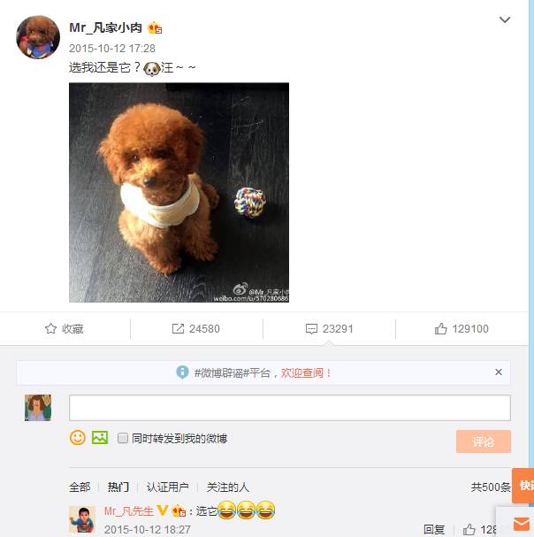 发过关于肉肉的微博,在肉肉的微博下面评论留言