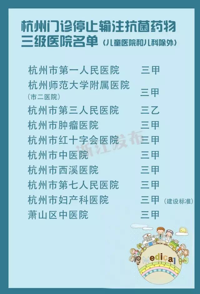 ▶近日,杭州城区市属三级医院已停止门诊输注抗菌药物↓↓↓