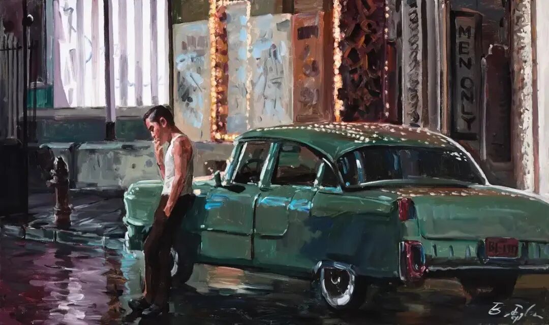 他的绘画题材更多是从日常生活中寻找灵感,许多都源自于旅馆房间以及路上匆匆瞥见的人和风景。此外,他还喜欢将电影的场景入画。