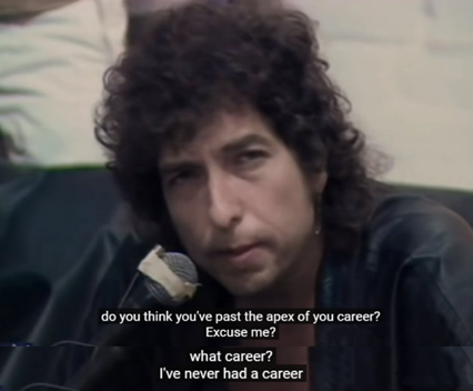 但很多时候在面对新闻媒体时,迪伦又会像一个被迫打开的话匣子,以自己迅速、聪明到有点自负的方式反击面前的记者们,让对方哑口无言好像一直是他的兴趣。甚至有人认为,迪伦开记者会,目的并不是宣传自己的作品,而是要公开羞辱各方媒体。
