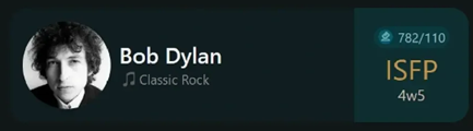 虽然迪伦不喜欢各种定义他的标签,但还是至少有4.5w的网友认为他是MBTI 16型人格中的ISFP-探险家,官方的测试网站也将他纳入了该人格的名人行列。