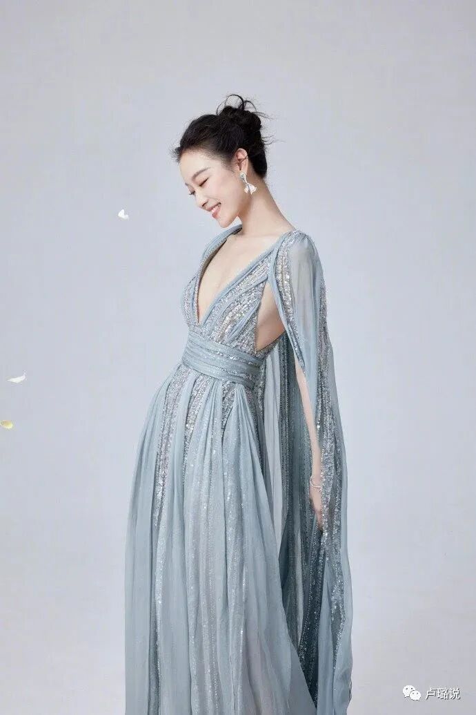 倪妮这次的造型仍在她的舒适区,穿着一袭冰蓝色亮片纱裙,来自Elie Saab 2020秋冬高定,充分发挥了她貌美肤白的优势。
