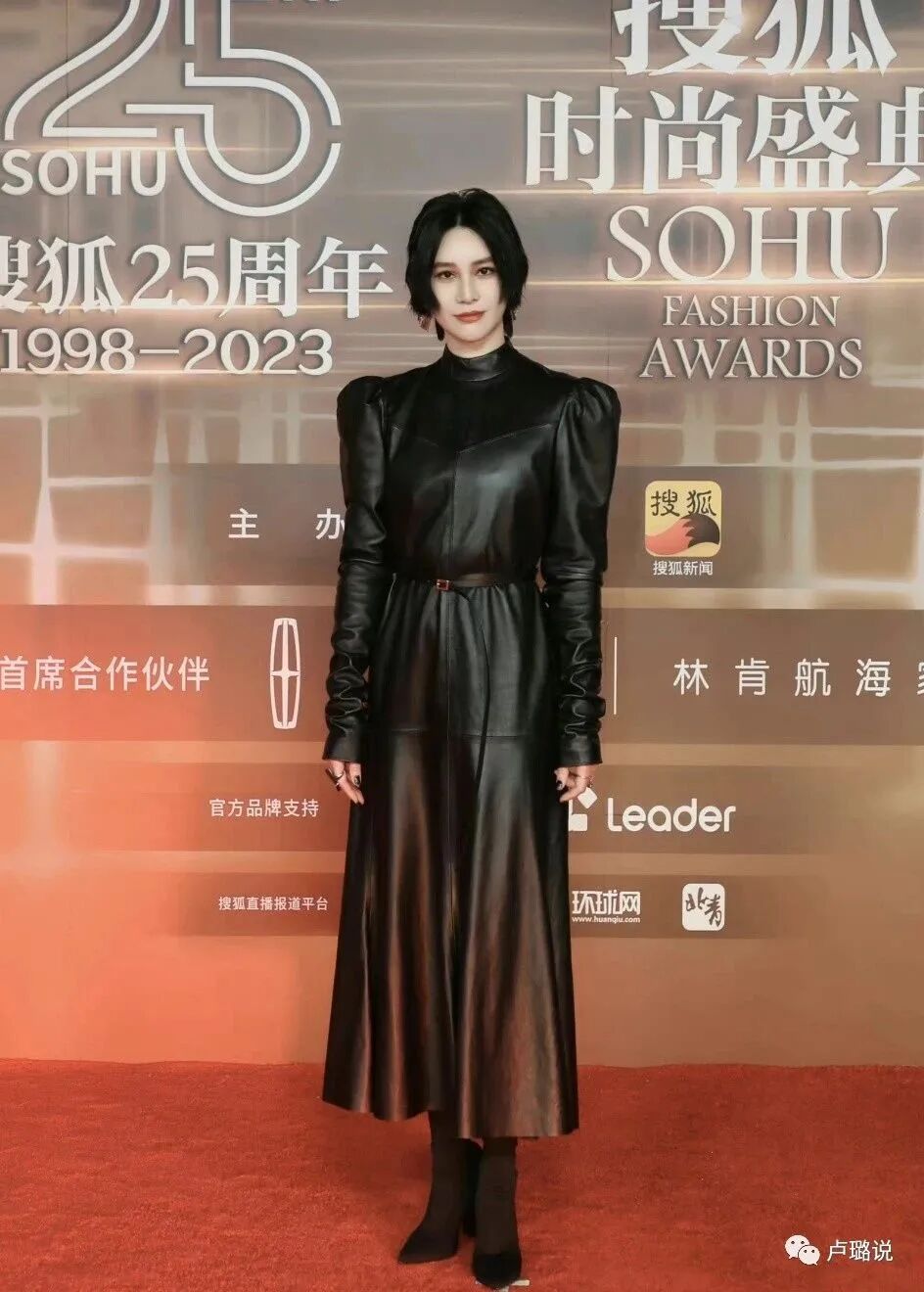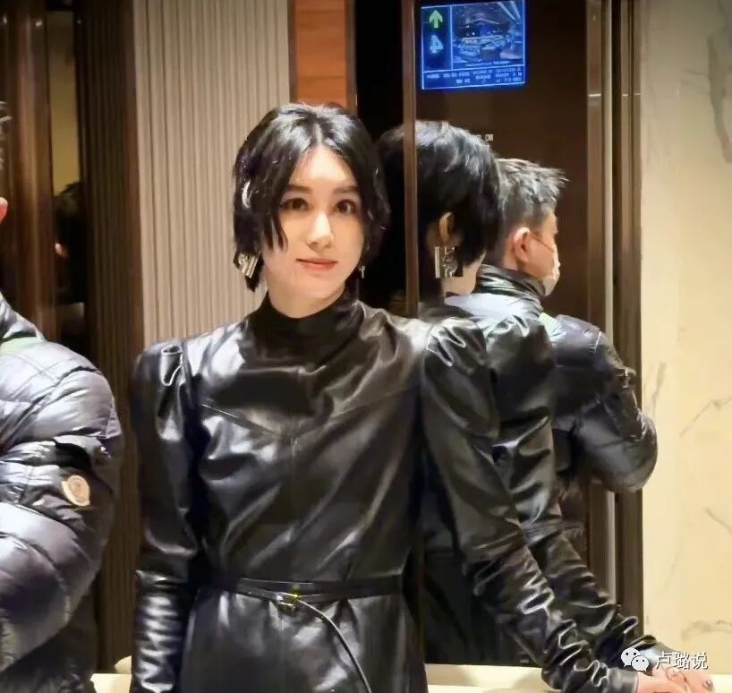 别人都在比性感比美,她倒好,一身黑色皮衣包裹得严严实实。说是酷吧,还多此一举设计了泡泡袖,显得整个人好臃肿。