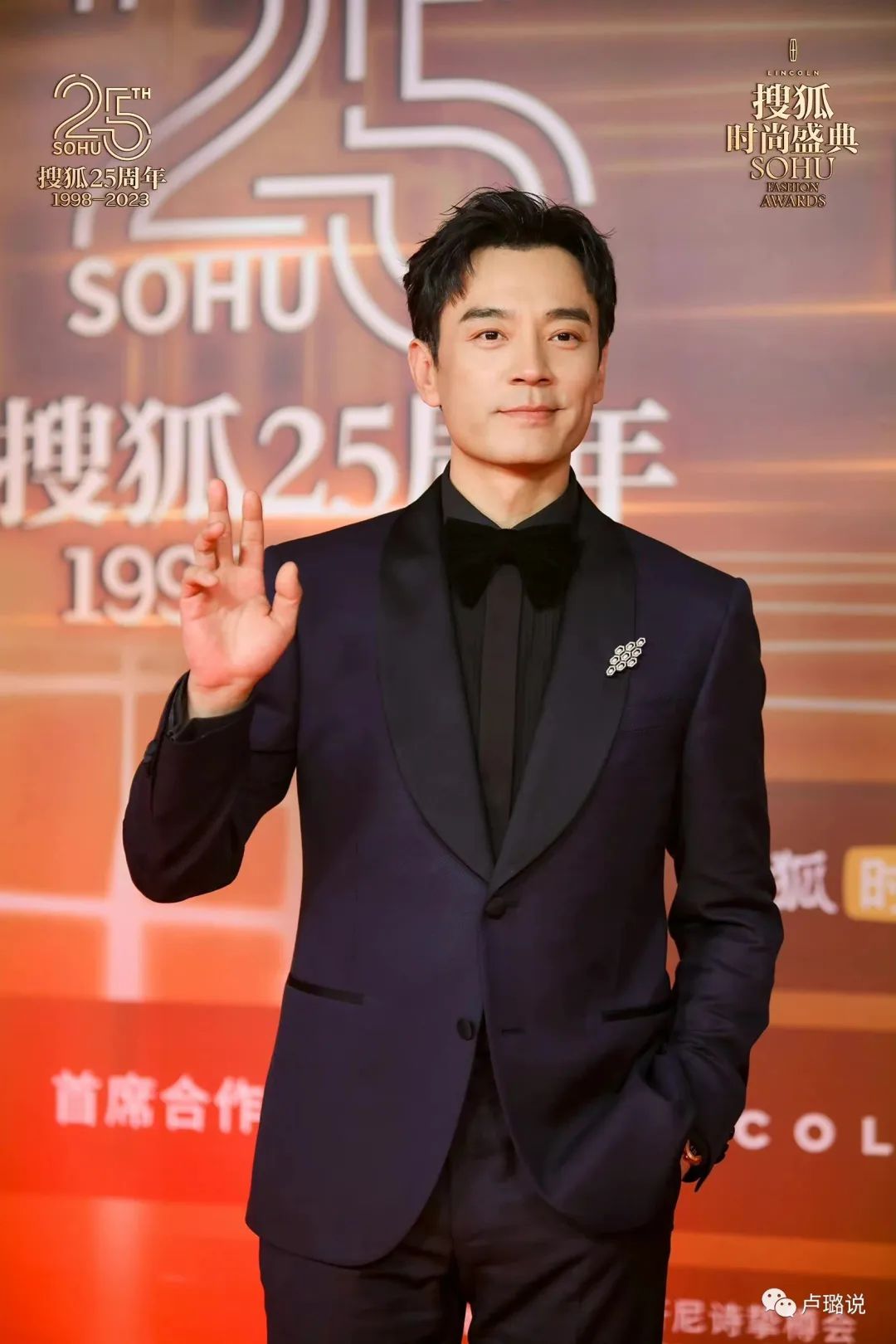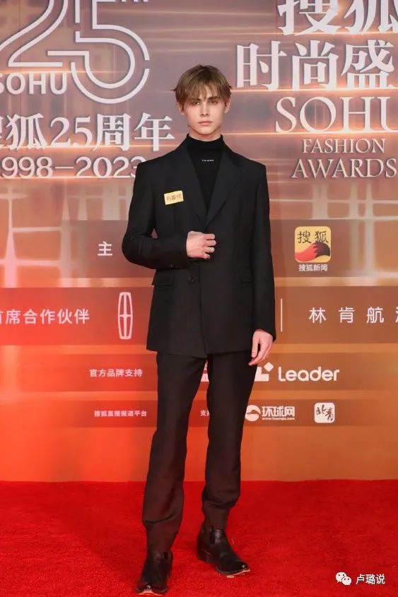 红毯上也是一身简约的黑西装,可赢就赢在超高颜值,站姿颇有男模的风范。