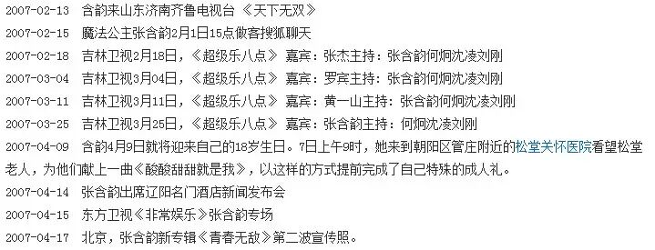 小妹索引2007年张含韵行程,发现前四个月都被安排的满满当当,但是后面,几乎就没有任何行程安排。据说是为了高考。