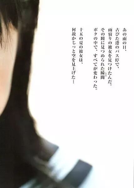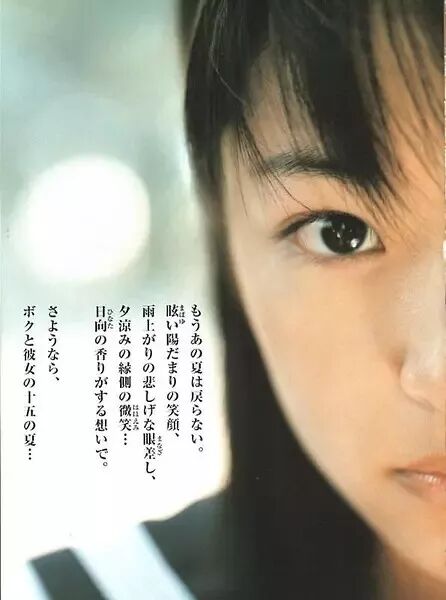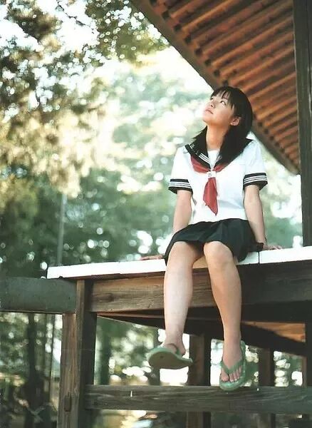 这套写真,是在她十五岁的时候拍摄的,几乎全部都是素颜出镜。最喜欢的是她吃西瓜那几张,让我一个没风扇没空调的人都感受到了那种清凉透过全身的感觉。还有穿着水手服拍照的那几张,对喜欢玩摄影的人来说,也非常地有借鉴性。少女么,不施粉黛,脸上留点汗,有点雀斑,有点瑕疵不是很正常的么?这才是真实的少女形态啊!(绝没有吐槽现在拍摄少女把照片修得一个毛孔都没有的意思!)