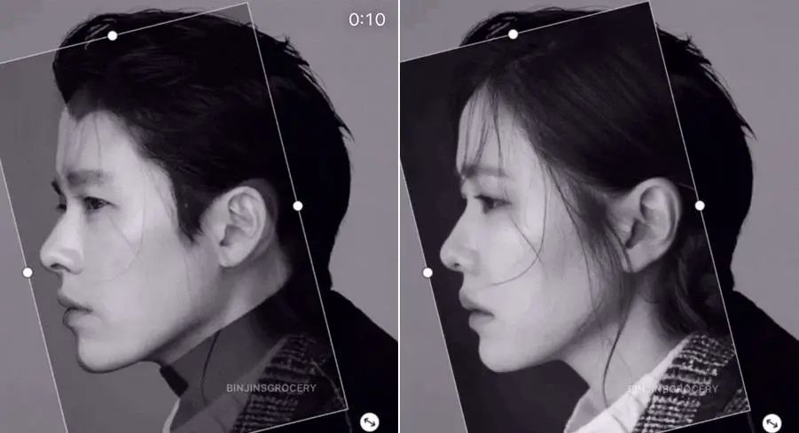 还有韩国网友将玄彬、孙艺珍侧脸照片叠到一起来看相似度,那真是不对比不知道,一对比吓一跳啊!可以说是完美重合了吧!妥妥的“夫妻相”啊!