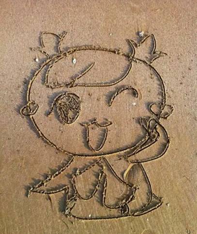 面对自己的神作,峰峰也是不好意思了吗?不过这画的究竟是什么?长了一对牛角的猪?