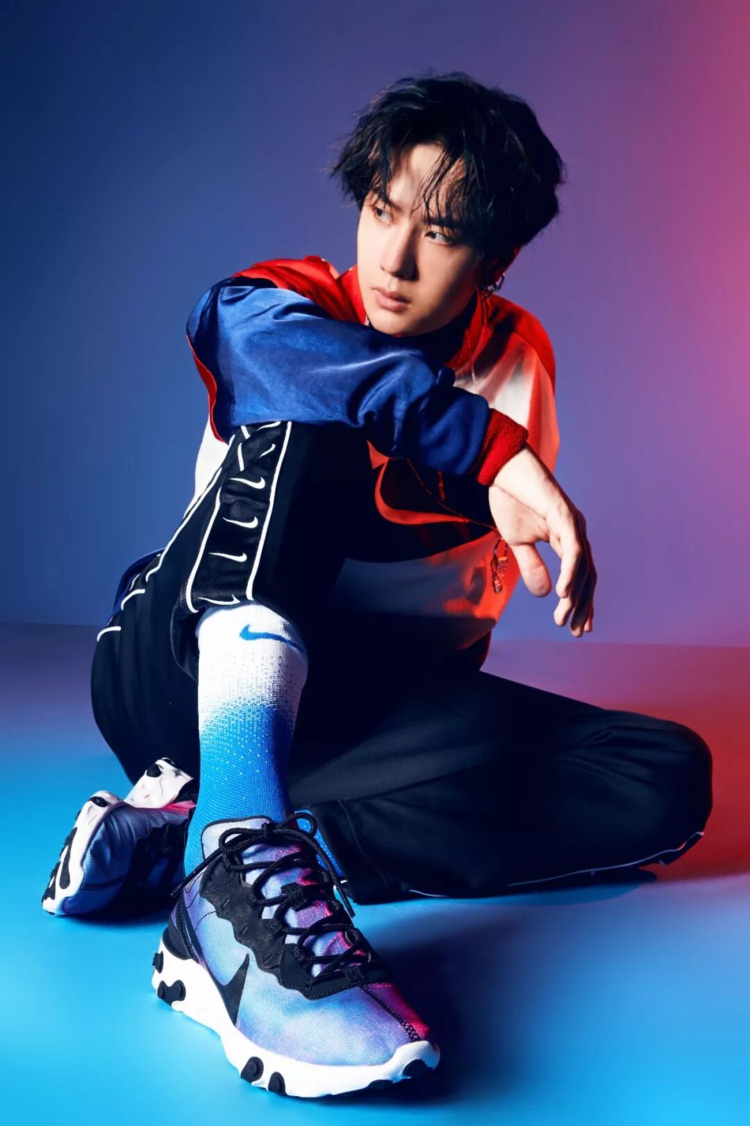 不过,最近王一博的开始穿起了亮色look,把亮点集中在一处,一眼就能抓住重点,比如靛蓝上衣或者Nike的荧光鞋▼