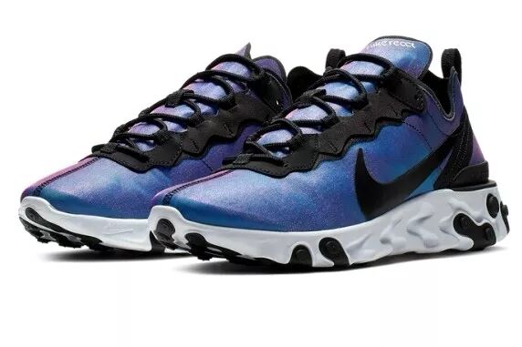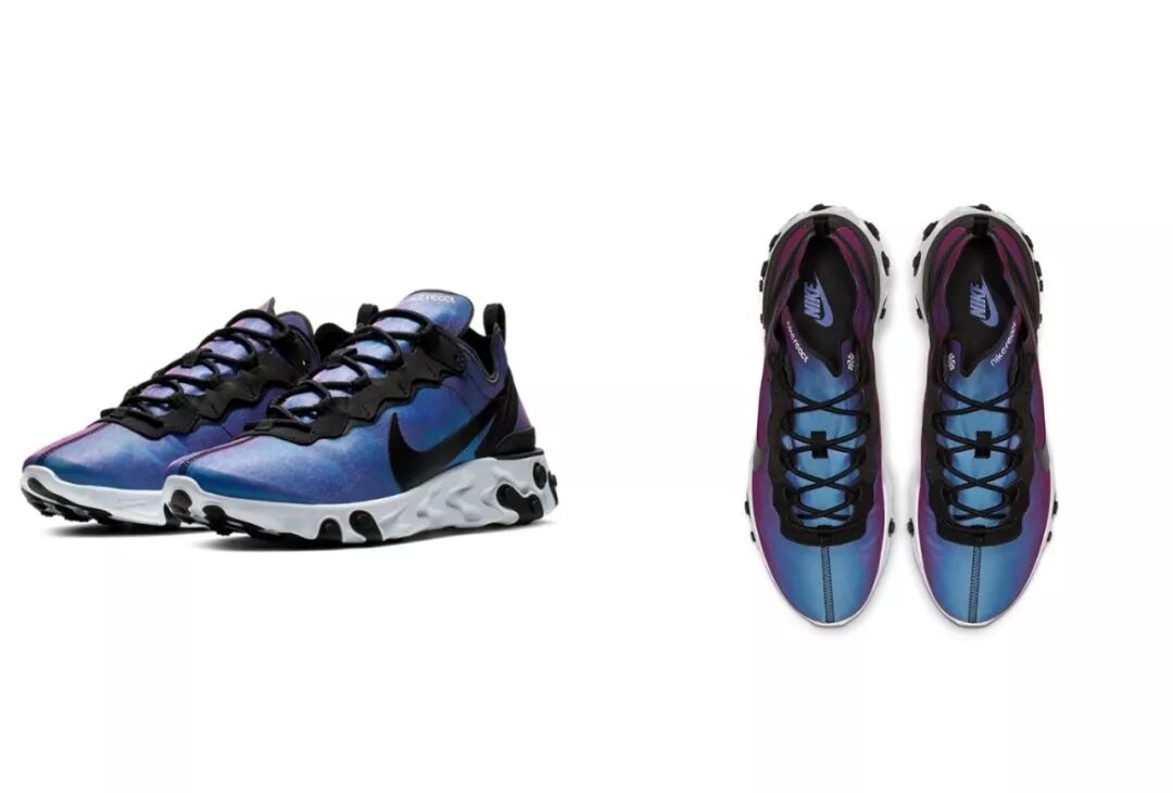 Nike React Element 55通过使用试验性的材质和边饰,配搭前卫夸张的配色,全新外观让人过目不忘▼