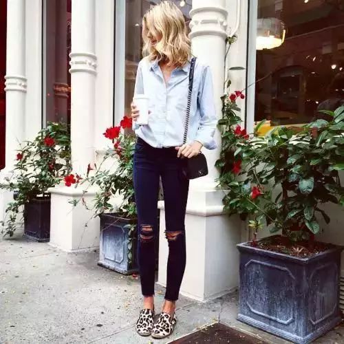 作为基础款牛仔裤,在款式与色调上,更显单一感,正因为这样,更是让牛仔裤百搭加倍!像小宋佳这样随意搭配一件白衬衫、或者针织衫,牛仔衣神马的,轻松拉长身材比例,尽显十足的街头女王范儿!