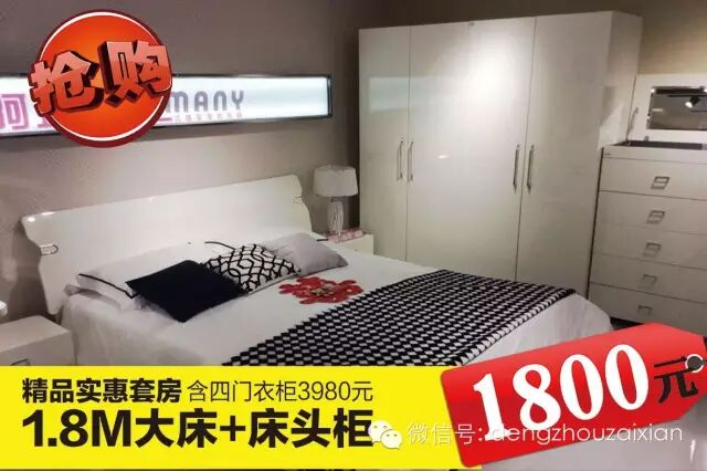 特价商品:精品实惠套房含四门衣柜3980元 1.8M大床+床头柜 惊爆价1800元