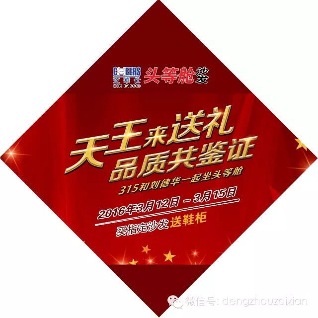 2016年3.12日- 3.15日到邓州“芝华仕头等舱沙发”仲景东路旗舰店,买头等舱沙发就送价值1840元超薄鞋柜,新加坡国际品牌HTL产品升级,部分真皮沙发底价销售,机会不可错过哦!国际品质家具就在芝华仕!3-15来和刘德华一起坐头等舱沙发吧!