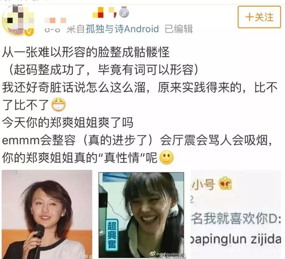 承认被骂,不承认也被骂,回应被说,不回应被骂“盛世白莲花”。她承认自己整容后,还有不少人诋毁她是“吸毒脸”。