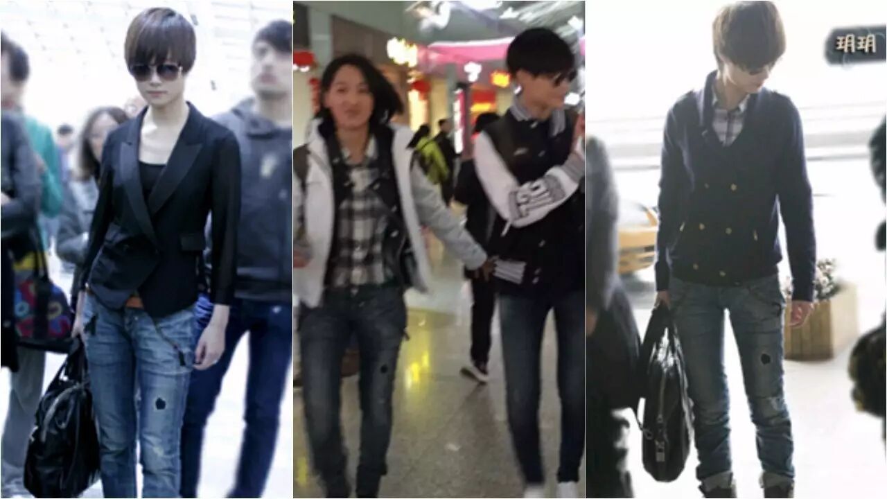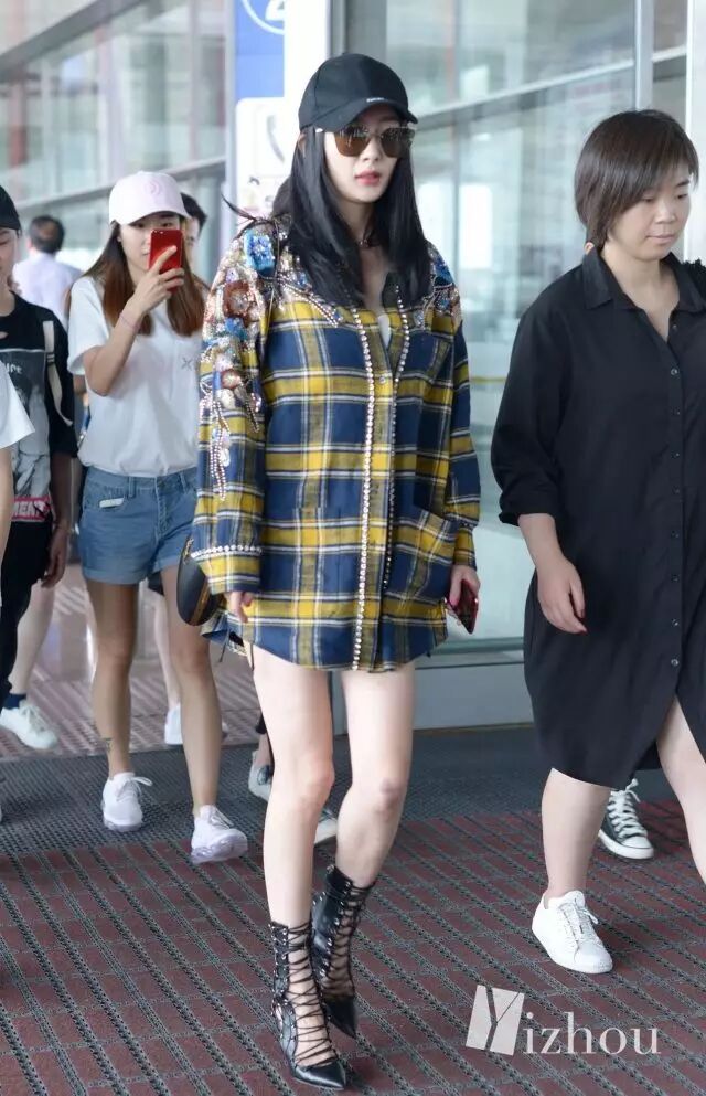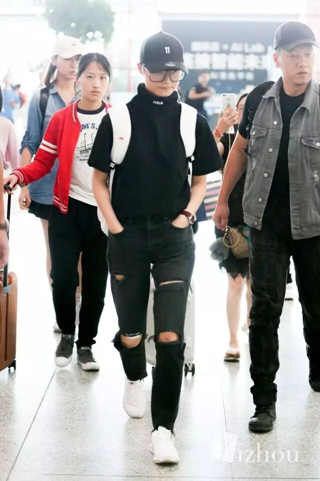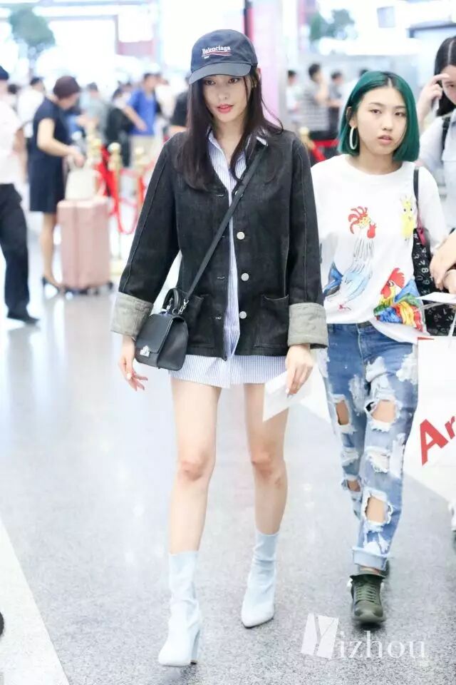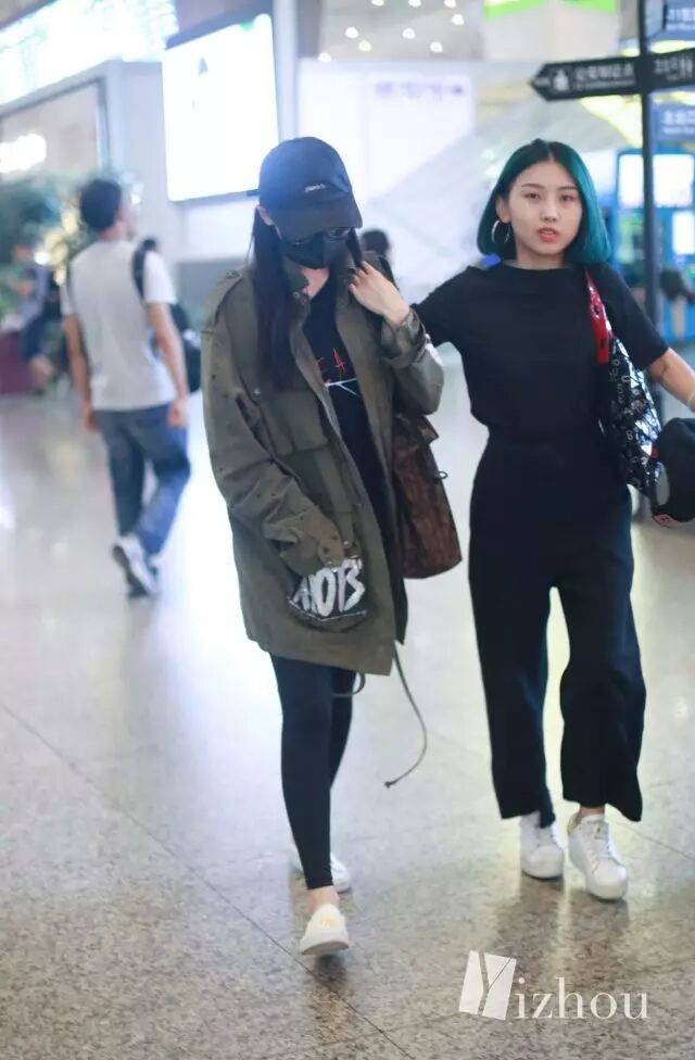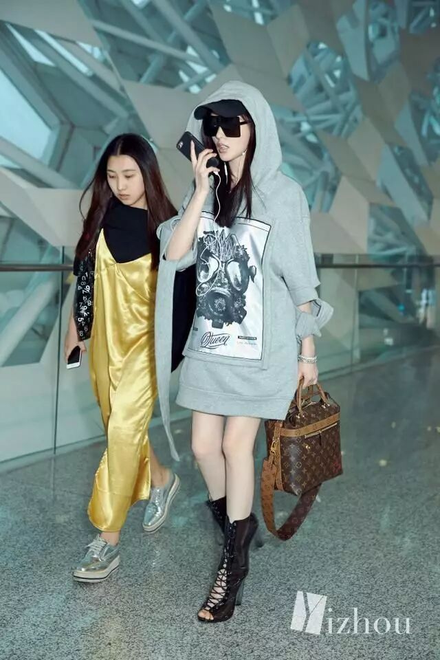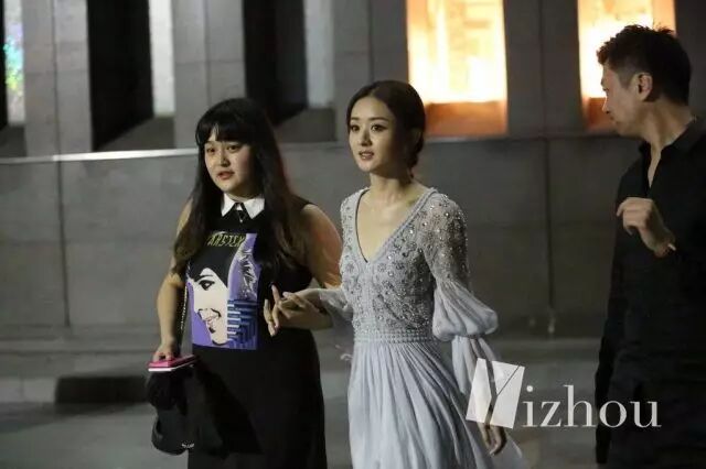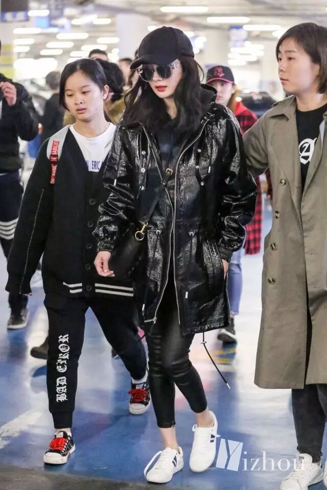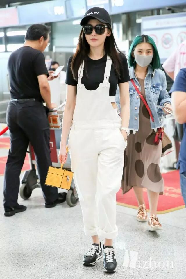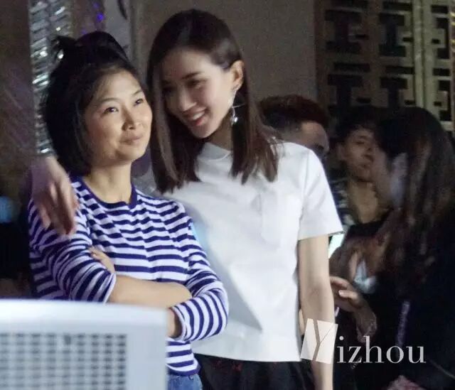 看到这张图,似乎觉得离张天爱换助理不远了吧···金色吊带裤和低调的灰色卫衣形成强烈的对比,似乎这二人的位置换了一下。