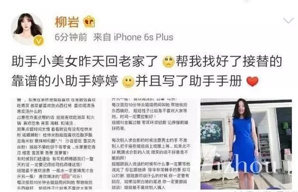 柳岩之前曾在微博上Po出前助理的照顾经验,看样子挺感动的,但随后被骂到删了微博···
