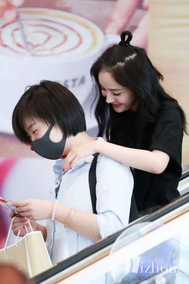 杨幂前阵子现身机场在电梯上亲切的搂住助理的脖子··画风··让人有点想嫉妒···