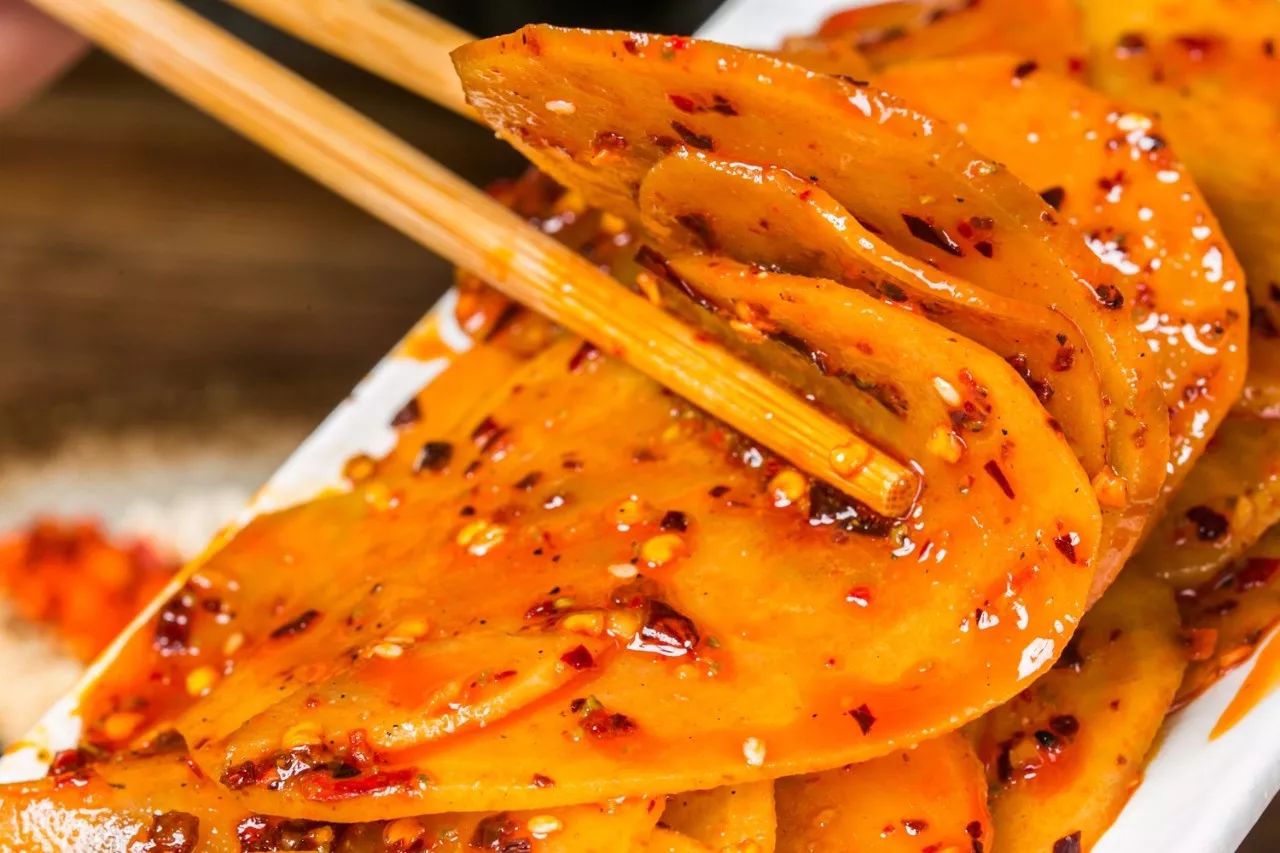 裹上红油底子的土豆片,吃起来不是软糯的土豆,而是爽口清脆的那种。埋头吃了十分钟之后,被辣到眼泪鼻涕齐飞,还是忍不住要继续!!
