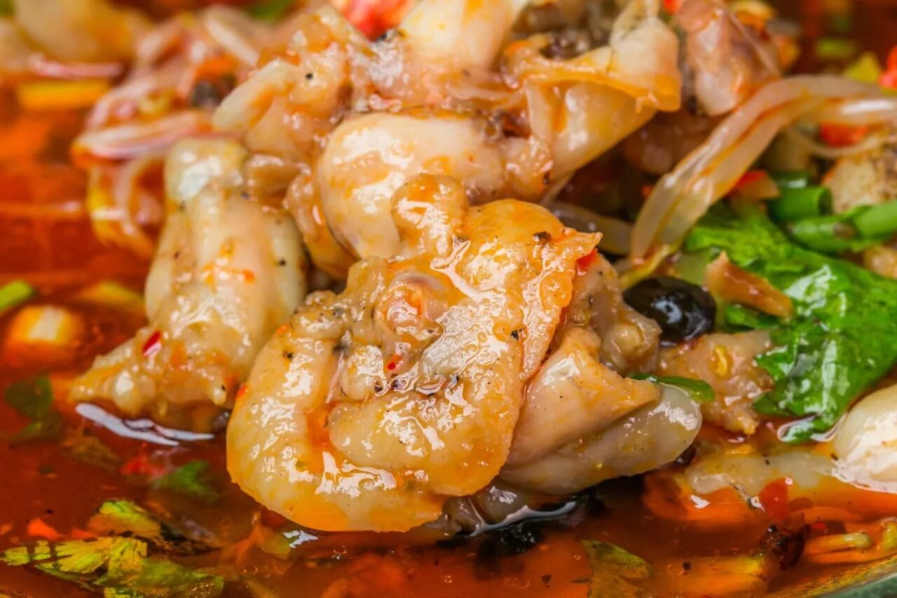 健硕的身板,结实的腿肉,一看就是有练过的!浸满了红油的蛙肉超入味,入口第一感觉就是又滑又辣,麻劲迅速提升,吃到最后感觉呼吸都带着火焰,超过瘾!