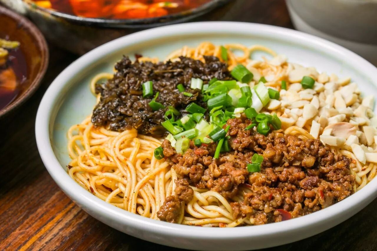 四川宜宾最富盛名的小吃非燃面莫属,撒上青葱、肉糜、花生碎,干香裹油的燃面我一口可以干一碗!