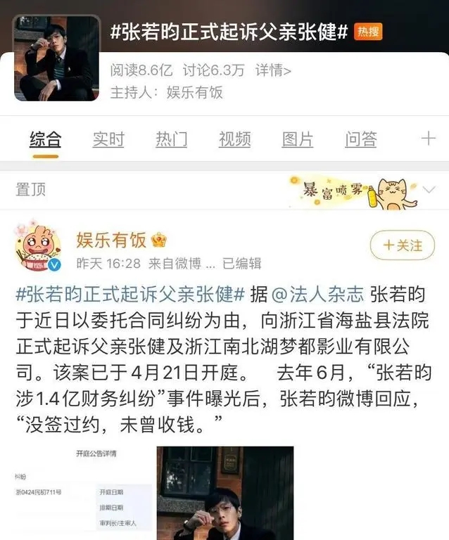 你见过哪个父亲能把亲儿子推上法庭?2016年,张健悄悄用儿子的名义签下天价合同,四部戏、两亿元,张若昀却全程不知情。合约曝光,项目黄了,公司急了,直接把张若昀告上法庭。父子俩当场“法庭见”,这不是剧本,是现实!