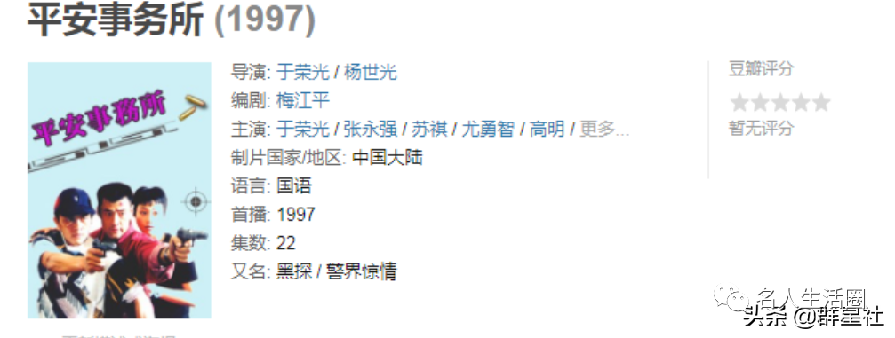 于荣光第一部导的戏是电视剧《平安事务所》,这部剧好评如潮,也更加坚定了他做导演的心,这也是为什么近些年荧幕上很少再能看到于荣光的戏,只是偶尔出面饰演一些配角。