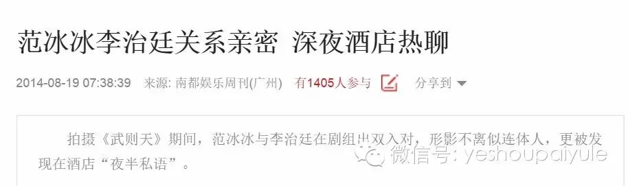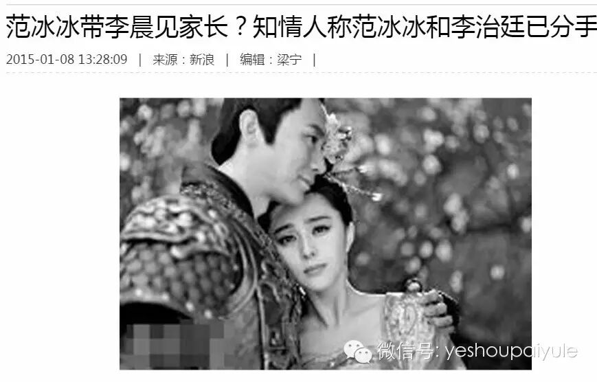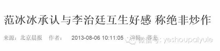 好了,记住2014年8月这个重要的时间点,它是李治廷和范冰冰恋情有了实质性爆料的时间,从卓伟有图有真相的爆料这天起,终于可以说这段恋情是坐实了。可是自从8月份之后,这段恋情却一下子就走向下坡路。
