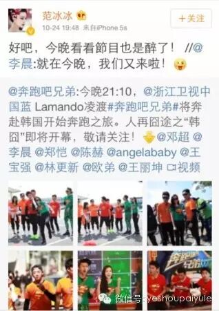 十月份开始,范冰冰开始以跑男话题和李晨互动