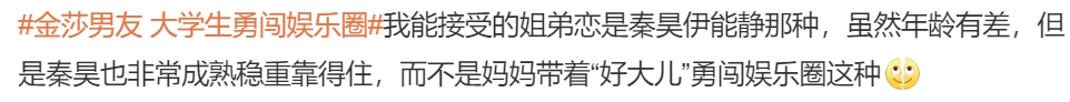 金莎,别嫁给他! GirlDaily 内地女星 2023-11-08 21:30:57 312 创作不易,用心坚持,欢迎请BaGua喝几杯爱心咖啡!打赏并支持本文 打赏并删除本文 42岁的金莎,又因为恋情上热搜了。这一次,是她带着小19岁的男友孙丞潇上恋综《爱的修学旅行》,全程甜蜜撒狗粮。比如,自曝男友为了追她变着花样做了100多道菜。(缺德网友:请问他是山东蓝翔毕业的吗?)带着骄傲的笑容夸男友,“好男人是不在市场上流通的”。金莎脸上的幸福是真的,外人围观下来,却忍不住为她担心。尤其在和男友一起做了关于对婚姻准备的心理测试后,她疑惑问出一句:我们合适婚姻吗?心理专家委婉、中肯却又一针见血地指出——如果你问我这个问题,我会觉得你似乎对你的婚姻不那么有信心。围观了一圈这对情侣的相处后,网友更是炸开了锅:“求求姐别恋爱脑了,这男的明显不爱你啊。”“姐姐玩玩就好了,奔着结婚去只会受伤害。”“这弟弟真的一天班都不想上啊,毕业直接傍富婆。”甚至有人预言一波:综艺一结束,这俩就会分手吧!金莎这段姐弟恋,为什么如此不招人待见啊?先来简单介绍下不太知名的孙丞潇。23岁,今年6月才从上戏毕业,属于个子高高的阳光大男孩,蛮符合金莎的择偶观。两人站一起,外形身高说一句般配没问题。此前金莎在微博上也秀过不少恩爱日常,网友还大赞她是“内娱萧亚轩”,和小奶狗恋爱不要太快乐。结果这次上节目,这对情侣完全打破大家的浪漫幻想了。备采时,孙丞潇面对镜头唯唯诺诺局促不安,金莎便一边拉着他的手,一边拍着背安抚:别害怕,老师们都特好,你跟他们打声招呼。满屏的弹幕都感到窒息了:救命,怎么好像妈妈领着孩子上幼儿园?这种母子既视感,几乎贯穿两人的相处日常。饭桌上共餐,金莎会习惯性给孙丞潇递纸巾,提醒他擦嘴。看得对面的朱丹忍不住露出耐人寻味的表情。专家提醒,感觉孙丞潇似乎需要你一些帮助,才能进入到成人的世界。潜台词:这弟弟不够成熟,看着不靠谱。金莎立刻护崽式反驳:他平常不这样的,这次是因为来到陌生环境……balabala……呃,姐,确定他是23岁不是3岁吧?如果只是情侣相处模式奇怪倒还好,两人相爱且自得其乐,外人也不好多说什么。真正让这段感情受到外界质疑的是,他们看似不平等的关系——她好爱,他不爱。金莎曾说过,希望另一半能和她眼神交流。节目中,她时不时看向孙丞潇,眼里的爱意都快溢出屏幕。反之孙丞潇,身体离得远远的,眼神又躲闪,全程没有直视过金莎一眼。话里话外,也在反复强调两人的年龄差。“这是我女朋友,43岁。”(金莎纠正:42)“她成名那一年,是我出生那一年。”(金莎苦笑:成名还没有,但差不多吧)整个对话看不出丝毫对女方的尊重。在金莎表达对婚姻的渴望时,孙丞潇坐在旁边任思绪神游太空。听到女方cue到他适合当丈夫时,他又下意识苦笑,表示自己对婚姻“只在视频里见过”。就差没把“恋爱可以,结婚就算了吧”说出口。偶尔回过神来,他也会对着镜头表白:我想证明我是爱她的,不以结婚为目的的恋爱就是耍流氓。金莎听得更爱了,外人却只觉得他是在给姐姐画大饼。网友纷纷调侃他演技不行,想立天真懵懂的纯情少年人设,却忘记演爱她的眼神。“金莎男友 装天真”甚至喜提热搜第一。你说孙丞潇真傻吧,这热搜一上,他立马就出来回应了,靠表达爱意又刷一波热度。但这爱意有几分真假,实在不好说。毕竟镜头之外,他和金莎约会,戴的却是初恋送的项链。堪称恋爱关系的致命一击。这头金莎满心欢喜想和弟弟踏入婚姻殿堂,那头孙丞潇尊重与爱一个都不沾。种种细节,都看得网友们格外忧心:金莎这段姐弟恋,怕是很难如她所愿走到最后啊。金莎和孙丞潇的恋情遭到非议的同时,也引发全网对姐弟恋的激情讨论。同样谈小鲜肉,大家从不担心张雨绮会受伤。她习惯把感情的主动权掌控在自己手中,也清楚意识到:男人一辈子都长不大,别妄想改变他们。所以张姐不强求婚姻,对感情来去随缘,只享受当下恋爱的快乐。但金莎不同,她渴望婚姻,把爱情的美好期望寄托在弟弟身上。偏偏这弟弟,无论自身实力还是心理认知能力,都接不住她的满心期待。纵然有爱又如何?女方觉得自己是奔着结婚去的,男方却想先玩玩吧,这样的思想差距往往会导致姐弟恋无法修成正果。阚清子纪凌尘就是前车之鉴。两人爱得正浓时,也耐不住阚清子在节目上频频失落:我只要九块九的结婚证而已,不是车房,没有任何附加条件。纪凌尘的意思却是,等我赚到大钱后再结婚,等我给你更好的未来。最终等到阚清子留下一句,“我的青春喂了狗”。爱情从来无关年龄,女强男弱也不是借口。姐弟恋虽然存在年龄、社会地位、经济收入各方面的差距,但重要的是双方在相爱的基础上,对未来的规划能达成共识。姐姐会赚钱心理又强大,就更加要求弟弟面对生活、未来、各方关系都能表现出责任与担当,这也是姐弟恋走向美满婚姻的关键。看看伊能静秦昊就知道了。在秦昊表明心意后,伊能静先泼他一头冷水:“你可能还没搞清楚,我比你大10岁,离异还带着一个孩子,你是不会娶我的。”可秦昊认定了就绝不放手,一条短信发过去:你明天过来,我跟你聊聊结婚的事。他的坚定,给了伊能静继续走下去的勇气。都说伊能静“爱作”,秦昊却get到了她背后的不安全感。所以即使直男不懂浪漫,他还是会在柏林电影节上主动牵起