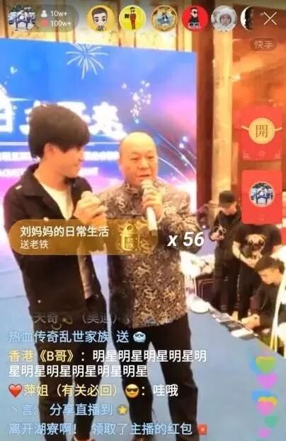 今年三月,号称“全网第一个古惑仔段子手”的快手主播表哥邀请了《古惑仔》里的大B哥吴志雄,与铜锣湾“大天二”谢天华一同直播。