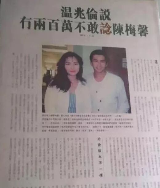1996年,温兆伦离婚时向妻子陈梅馨追讨分手费,却爆出自己出轨的新闻,形象跌至谷底。