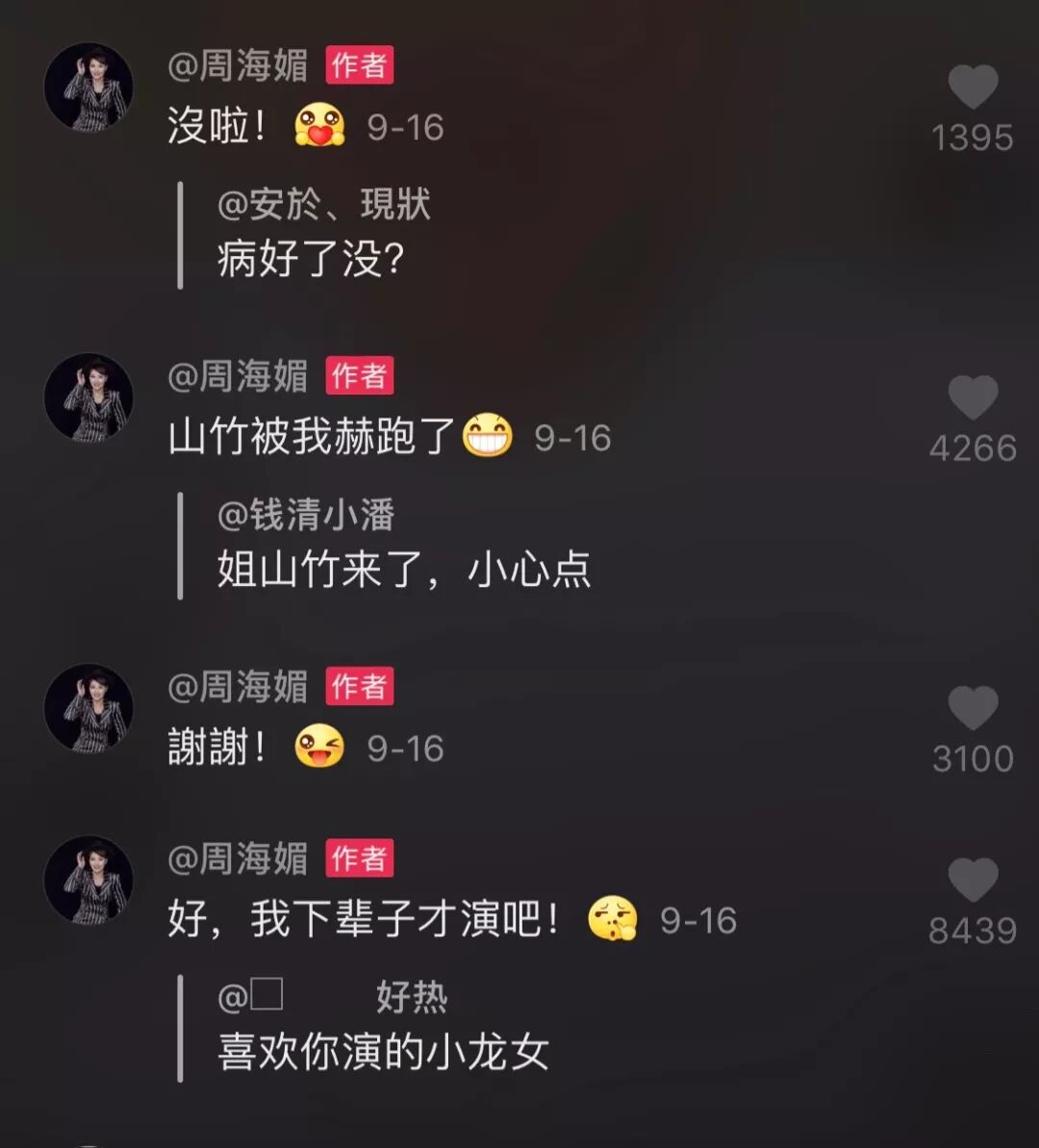 而周海媚很喜欢回复留言,即使有时,留言会把她和童年影像记忆里的其他人弄混。
