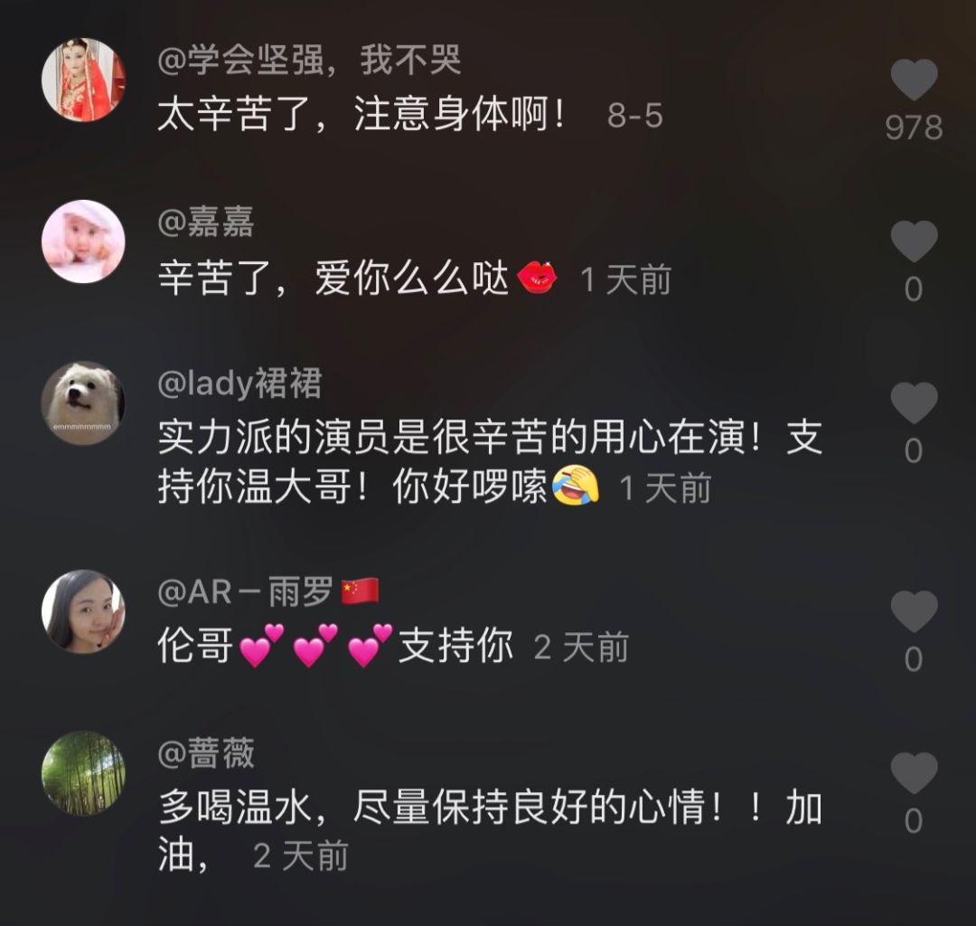 视频下有将近6000条的评论。他们对温兆伦嘘寒问暖,对他的付出感到心疼。