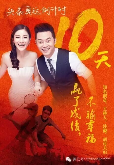 今日(26日),2016里约奥运会正式进入倒计时10天。上午12时,沙溢、胡可夫妇继黄晓明、周迅、李易峰、李宇春、朗朗、佟大为、王皓、潘晓婷、刘璇等一众明星后,又一对明星夫妻成为“百人百天奥运倒计时明星开屏活动”的开屏明星,致力传递奥运拼搏精神,为备战里约奥运会的体育健儿加油呐喊。