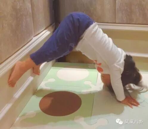 2岁已经跟着妈妈做瑜伽了~弯腰、抬腿、盘坐……有模有样。