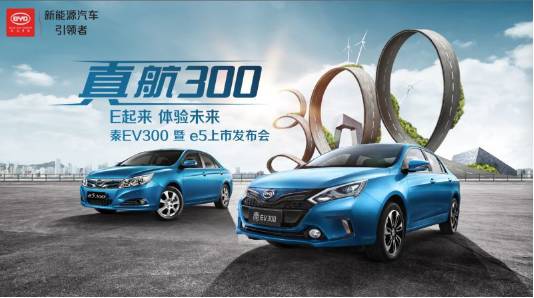 “真航300-E起来 体验未来”,比亚迪秦EV300、e5于2016年3月31日领航上市,为个人消费者提供更多选择。其中,秦EV300推出四款车型,官方售价25.98—30.98万;比亚迪e5推出三款车型,官方售价22.98-24.98万。