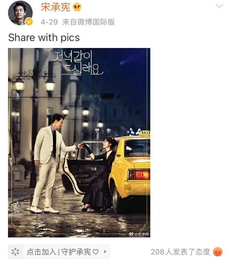 还真不是空穴来风。记得当年宋承宪宣布分手的时候,就把当时新戏《Black》的高雅拉送上了热搜,这回怎么着,还想给《一起吃晚餐吗》的徐智慧小姐姐送点流量吗?