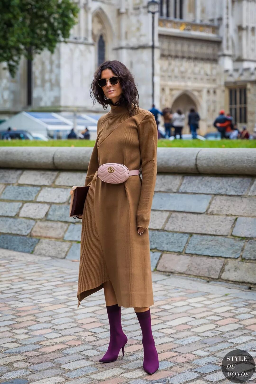 一条看似最简单的针织裙,不同的纹路拼接,就多了不一样的亮点,腰间的粉色腰包以及尖头袜靴,不仅凹出了你的腰身,时髦度up!