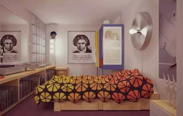 他的布景设计师John Barry曾说Alex房间的灵感来自于当时的一场女性雕塑展。而其床单上黄色的延展代表着性欲和暴力。