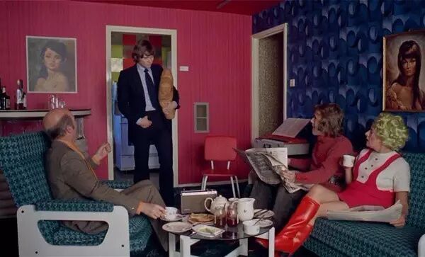 这部荒诞类型的文艺片里面西装革履的穿着和颜色激烈的背景,都让院长感觉他们在一本正经发神经。
