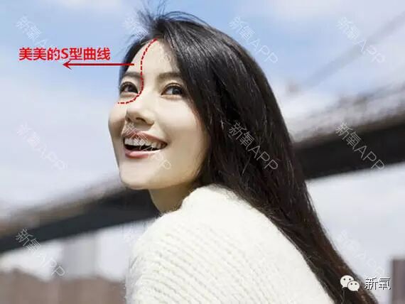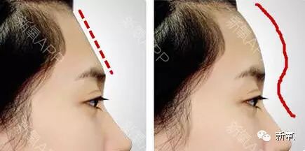 标准美的额头,线条应该平稳柔和地过度到鼻根部,鼻额角应该为135°左右,侧面看是一条浅浅的S型曲线。