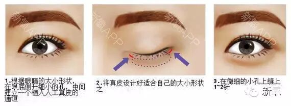 通过切开下眼皮两侧约1.5-2.0mm左右的皮肤,再把人工真皮组织放进去,以增加下眼皮厚即可,整体手术在局麻下进行,只需10分钟,而且效果持久自然,缺点是需要开刀。